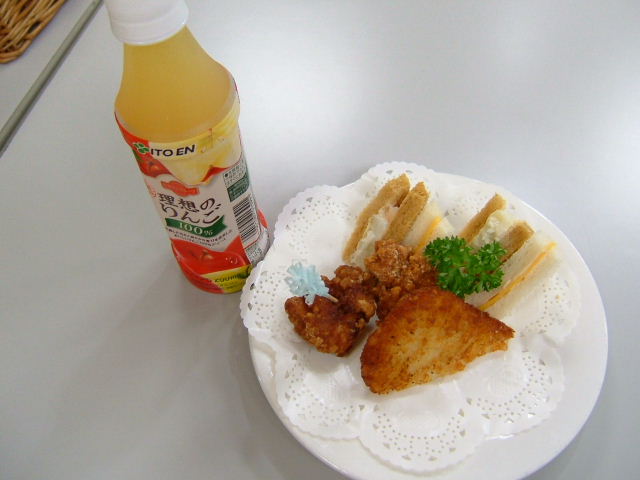 サンドイッチと唐揚げハッシュドポテト+飲み物~p(^-^)q