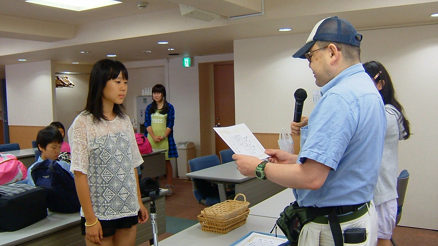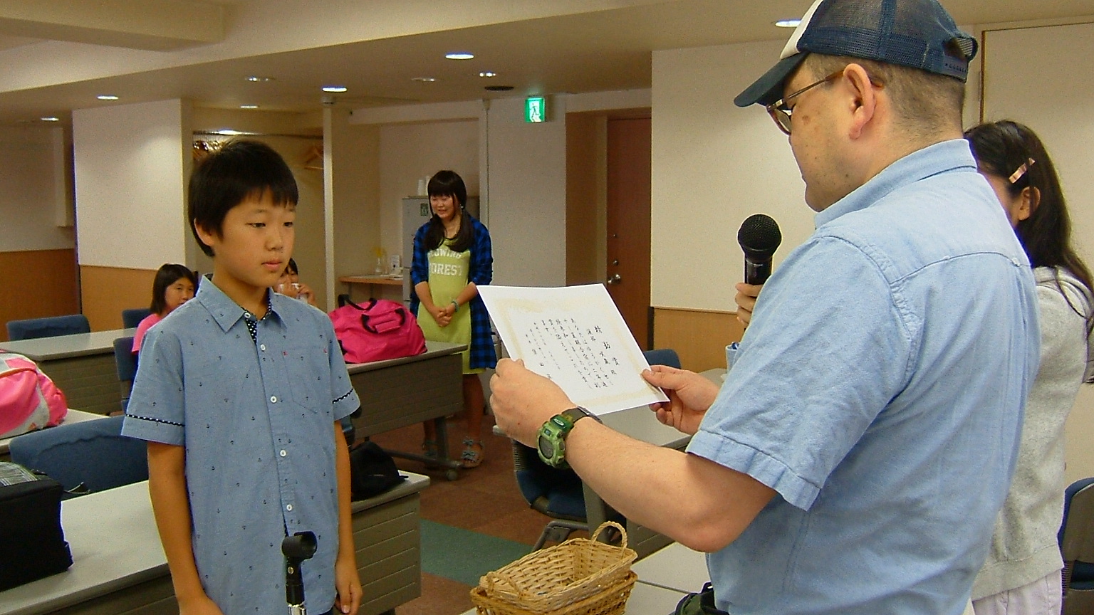 ここでひとり、A.Rくんが「塾長、しおりなくしました。」で●進呈。名前を書いておきましょうよ!