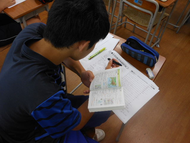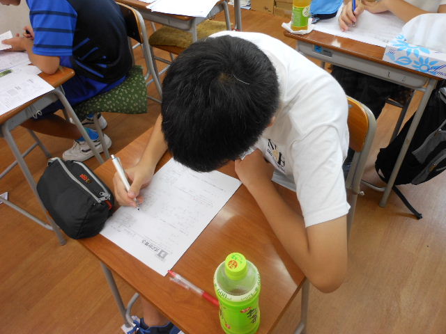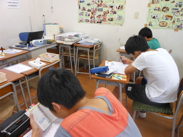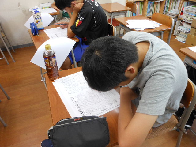 午前中は、授業 50分×3コマです。今回参加生の中には2名、過去の合宿経験者がいますが、二人とも「意外に楽に」を口にしています。これはやはり長時間学習を乗り越えた合宿経験者の強みだと実感しました。