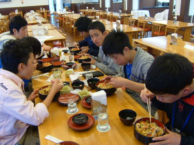 開校式のあとは、昼食です。今回は、ほとんどがバイキング形式なので、揃って食べる貴重な回です。