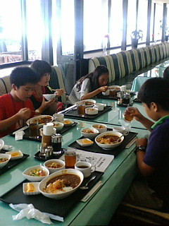 開校式の後、45分×2コマを終え、昼食です。