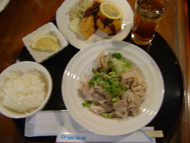 豚しゃぶのゴマ風味 カニコロッケとエビフライ