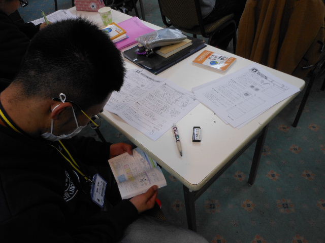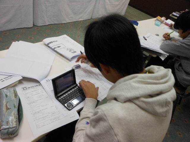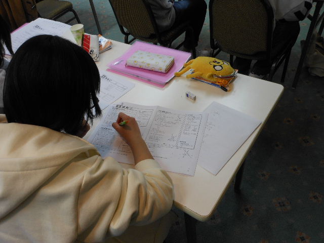 その後もまだ熱心に残って質問をしている生徒もいます♪(明日は追加プリント進めます。)