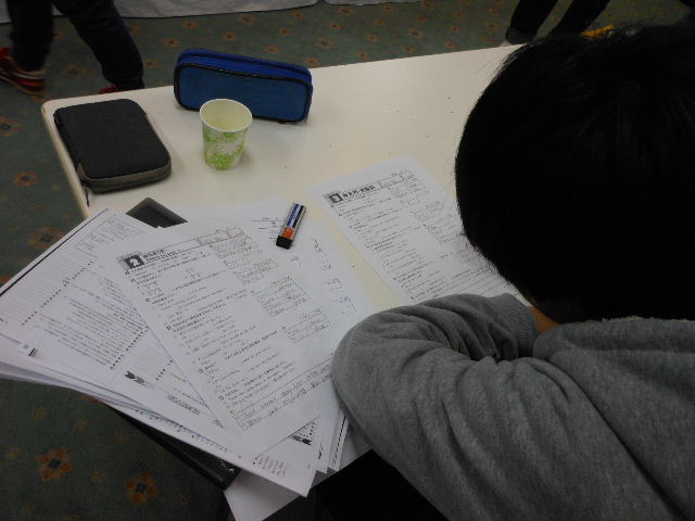 …というわけで、80分×4コマを無事に乗り越え、塾長からの差し入れアイスを食べて50分×2コマのテスト&演習へ(理科・社会の昨年YSテストを解いて「直し」)