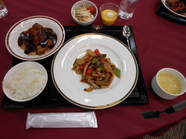 イカのしょうが焼き 豚の角煮 棒々鶏サラダ