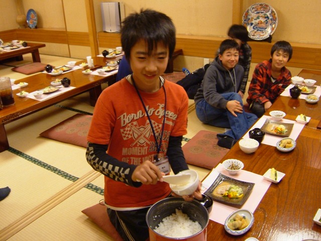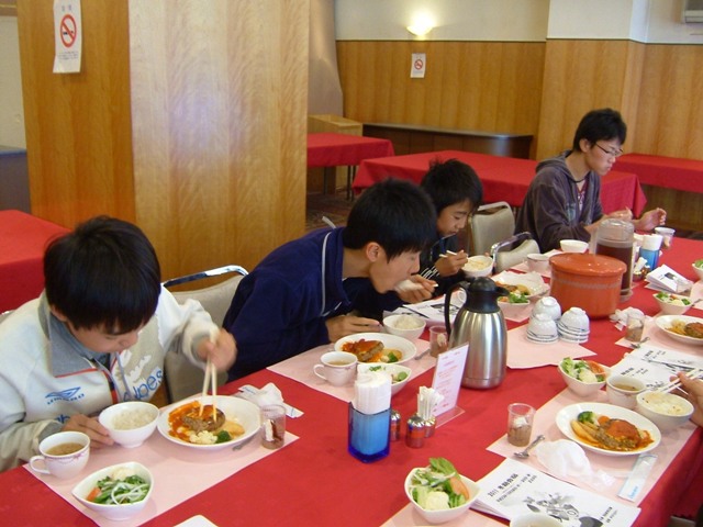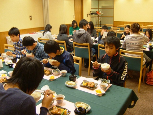 7:00起床で、バイキング形式の朝食を各自が自由にとり、9:00から授業開始ですが…