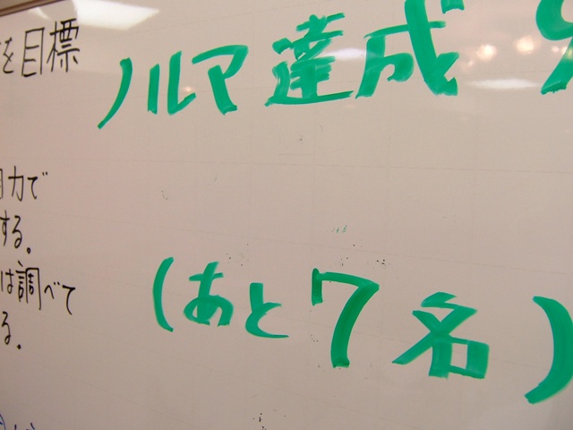 午前中の授業がすべて終了し、ノルマ未達成は、あと3名!