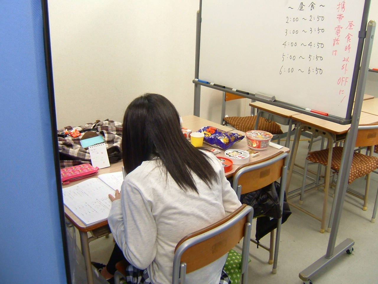 そしてプレップタイム(質問・遅れている方の科目を自由に行う時間)50分×1コマ、22:50で本日の授業は終了…と、熱心な生徒が数名23:30まで頑張りました♪