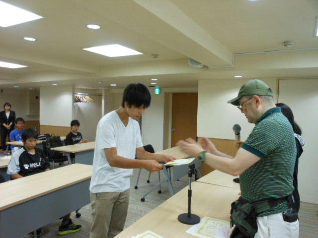 修了証授与 代表:中3K・Rくん
