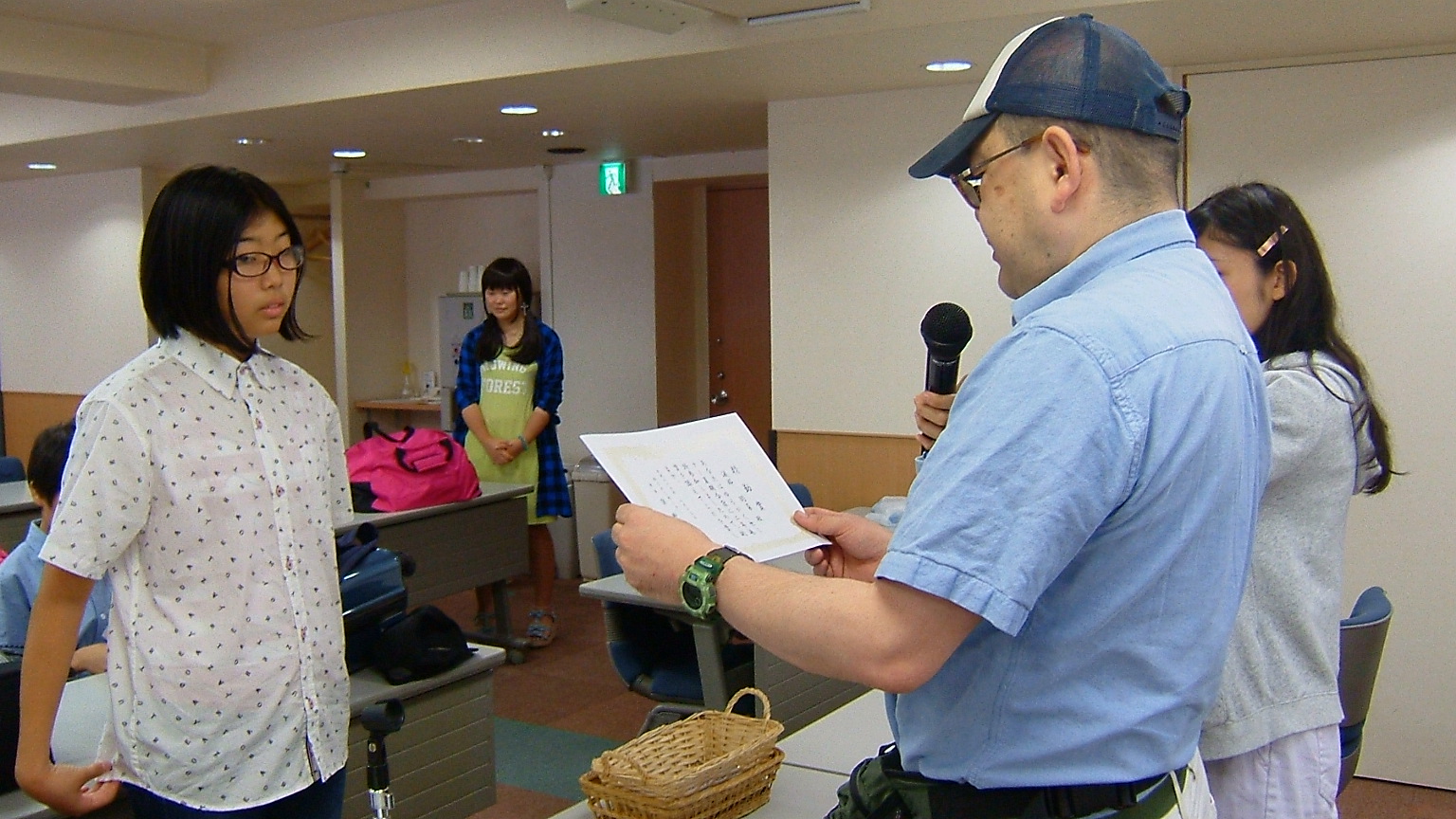 ここでひとり、A.Rくんが「塾長、しおりなくしました。」で●進呈。名前を書いておきましょうよ!